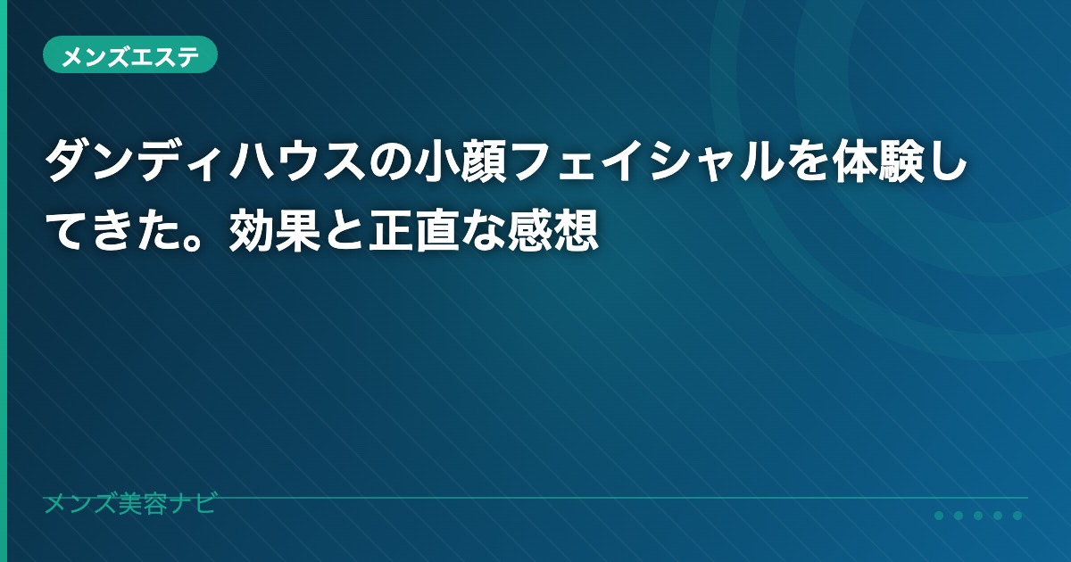 ダンディハウスの小顔フェイシャル、少なくとも1回体験する価値はある。初回体験価格でリスクなく試せるので、「気になってるけど行けてない」という人は予約してみていいと思う。