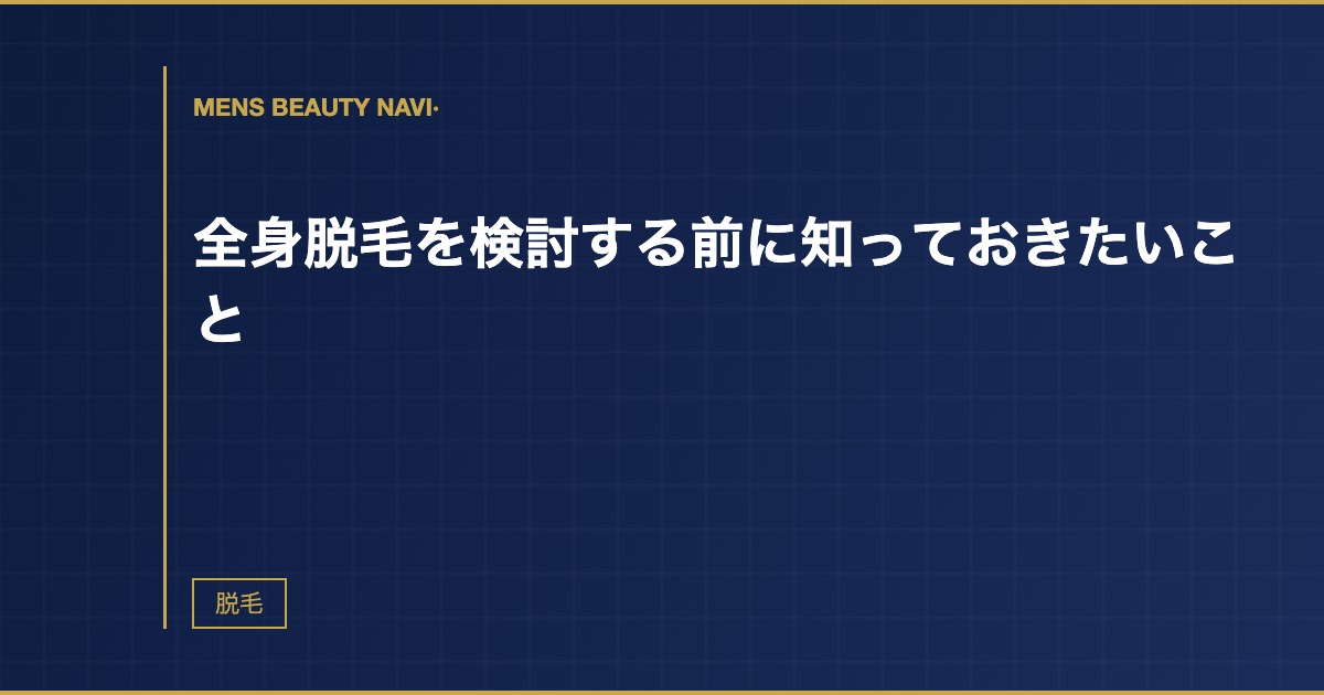 全身脱毛を検討し始めたとき、「どこまでが全身なのか」「何回くらいかかるのか」「費用は全部でいくらか」という基本情報すら最初はよくわからなかった。調べるほどクリニックごとに説明が違って混乱した経験がある。実際に全身脱毛を経験した立場から、検討前に知っておいたほうがいいことを整理する。