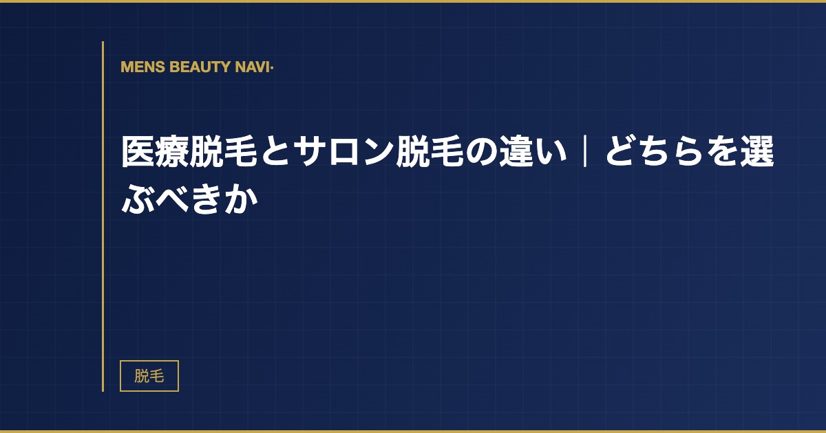 メンズ脱毛を始めようとしたとき、最初に迷うのが「医療脱毛にするかサロン脱毛にするか」という選択だ。調べると両方の情報がたくさん出てくるが、実際どちらを選ぶべきかの判断基準がよくわからない人は多いと思う。自分は医療脱毛を選んで3年継続した経験から、両者の違いを整理して書いておく。