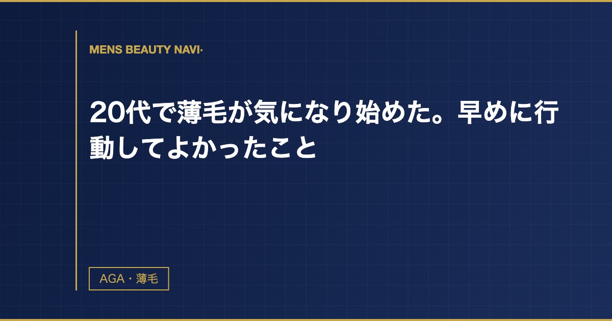 薄毛は放置すると進行し続ける。20代で気になり始めたとき、「まだ若いから」と流したまま30代まで何もしなかったら、今頃どうなっていたかを想像することがある。AGAに気づいたのが20代だったこと、そして早めに相談する決断をしたことは、本当によかったと思う。同世代で薄毛が気になっている人には「若いから大丈夫」という言葉を信じず、早めに専門家に相談してほしい。行動するタイミングは早ければ早いほど選択肢が広い。