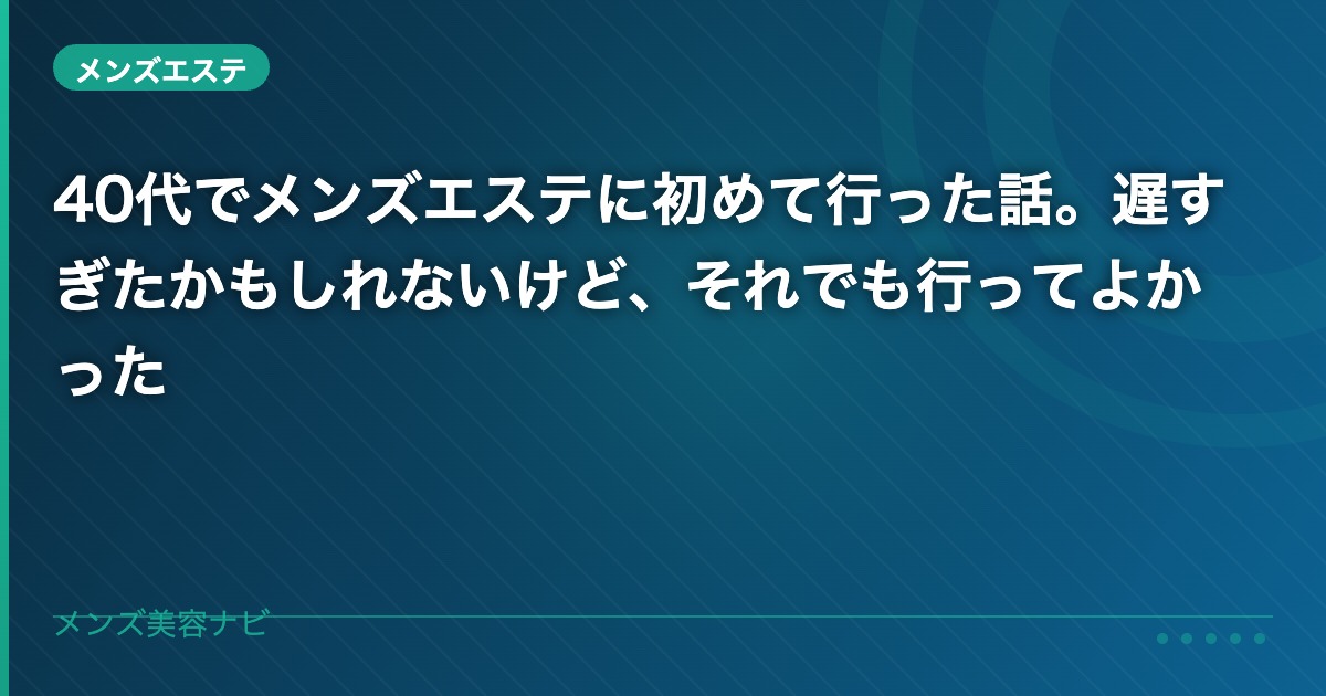 40代でメンズエステを始めた話を書いたが、年齢を理由に躊躇している人がいたらこう言いたい。遅すぎるということは絶対にない。肌は何歳からでもケアに応えてくれる。始めたその日から変化は積み重なっていく。それだけは自信を持って言える。