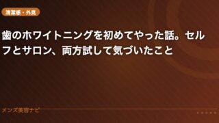 清潔感・外見歯のホワイトニングを初めてやった話。セルフとサロン、両方試して気づいたこと 歯の黄ばみが気になり始めたのは、30歳を過ぎた頃からだった。コーヒーを毎日3杯飲む生活を何年も続けていたし、茶渋みたいなものがついてきているのは自分でも気づいていた。でも「歯のホワイトニング」というのは、芸能人とか歯への意識が高い人がやるものだと思っていて、自分には縁がないと決めつけていた。 変わったのは、歯科の定期検診に行ったとき。「ホワイトニングも気になりますか?」と聞かれたのがきっか... 2026.03.24 2026.03.25清潔感・外見