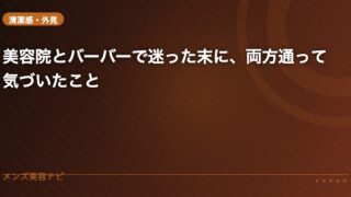 清潔感・外見美容院とバーバーで迷った末に、両方通って気づいたこと 髪を切りに行くとき、どこに行けばいいのかずっとわからなかった。美容院とバーバー、何が違うのか。値段も違うし、雰囲気も全然違う。なんとなく「バーバーはおじさんが行くところ」というイメージがあって、20代の頃はずっと美容院だけ通っていた。 でもあるとき、職場の先輩が「最近バーバー行くようになったんだよね、全然違うよ」と言っていて、少し気になった。その先輩、髪型がすごく決まってた。清潔感があって... 2026.03.24 2026.03.25清潔感・外見