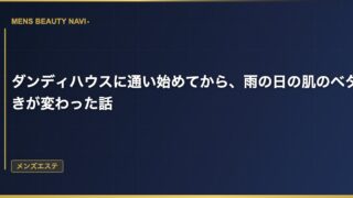 メンズエステダンディハウスに通い始めてから、雨の日の肌のベタつきが変わった話 雨の日に顔がベタつくのが、30代になって急に気になり始めた 20代のころは雨の日に顔がベタつくなんて感覚、あんまりなかった。汗かいたらべたつくくらいの認識。 2026.03.14 2026.03.25メンズエステ