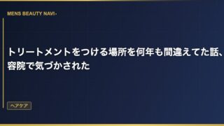 ヘアケアトリートメントをつける場所を何年も間違えてた話、美容院で気づかされた トリートメントを頭皮にべったり塗っていた 美容院で指摘されるまで、俺はトリートメントを頭皮からべったり塗っていた。シャンプーと同じ感覚で、頭皮にしっかり揉み込んで、髪全体になじませる。 2026.03.14 2026.03.25ヘアケア