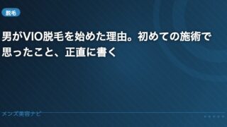 VIO脱毛、という言葉を初めてネット記事で見たのは2年前くらいのことだった。最初は「男がそんなとこ脱毛するの?」と正直思った。でも調べれば調べるほど、やってる男性って結構多いんだな、と気づき始めた。 決定打になったのは、ジムでたまたま見た同年代の男性の身体だった。清潔感というか、なんというか、ムダ毛の処理がしっかりしてる人って雰囲気が全然違う。それまで自分は全く気にしてこなかったけど、そこ...