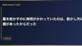 翌日の頭皮の状態も変化があった。いつも夕方になると頭が痒くなることがあったが、ヘッドスパ翌日はそれがなかった。毛穴の詰まりが取れて、頭皮の状態がリセットされた感じ。