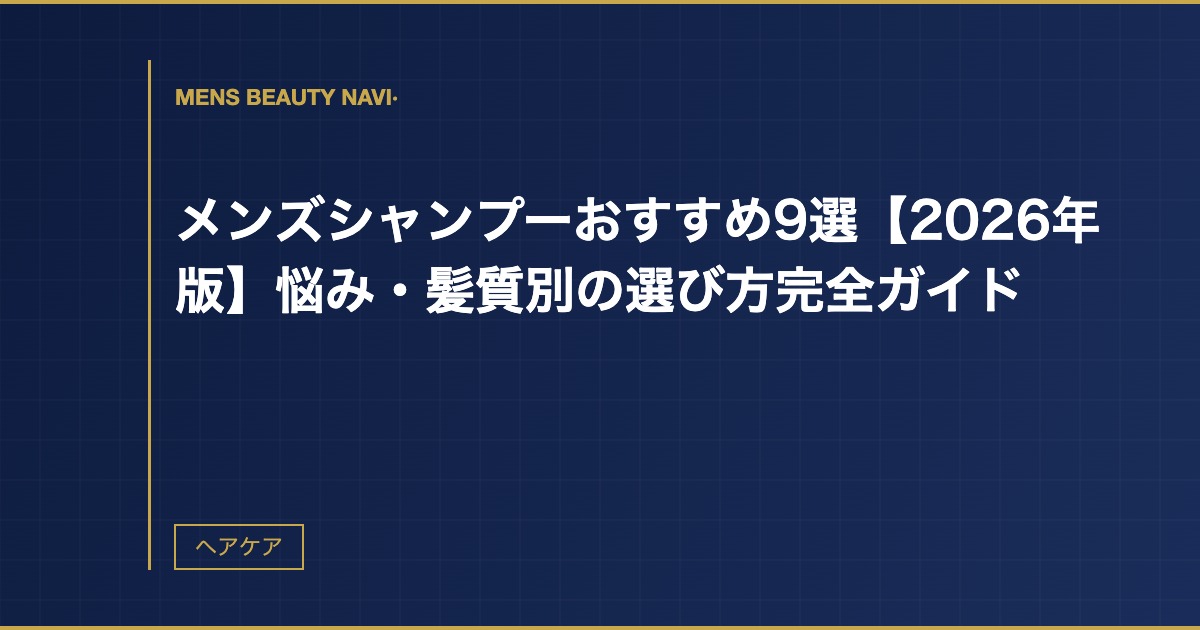 メンズシャンプーおすすめ9選【2026年版】悩み・髪質別の選び方完全ガイド