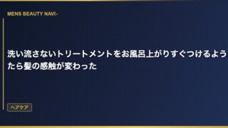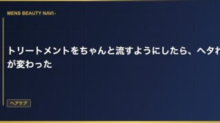 ヘアケアトリートメントをちゃんと流すようにしたら、ヘタれ方が変わった トリートメントの流し方なんて気にしたことがなかった シャンプーの後にトリートメントをつける。それだけで十分ケアした気になっていた。トリートメントを髪に馴染ませて、適当に流す。 2026.03.14 2026.03.25ヘアケア