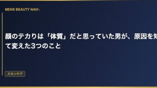 スキンケア顔のテカりは「体質」だと思っていた男が、原因を知って変えた3つのこと 昼過ぎには顔がテカテカだった20代 昼休みにトイレの鏡を見ると、おでこと鼻がテカテカに光っている。20代のころからずっとそうだった。「オイリー肌は体質だから仕方ない」と諦めていたし、あぶらとり紙でこまめに拭くくらいしか対策をしていなかった。 2026.03.14 2026.03.25スキンケア