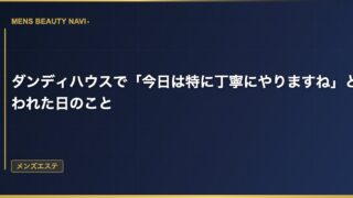 メンズエステダンディハウスで「今日は特に丁寧にやりますね」と言われた日のこと いつもと違う雰囲気で施術が始まった ダンディハウスに月2回通うようになって、施術の流れはほぼ体に染みついている。受付→着替え→カウンセリング→施術→仕上げ→次回予約。 2026.03.14 2026.03.25メンズエステ