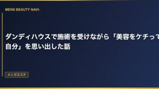 メンズエステダンディハウスで施術を受けながら「美容をケチってた自分」を思い出した話 施術台の上でふと過去の自分を思い出した ダンディハウスでフェイシャルを受けているとき、目を閉じてリラックスしていると、ふと昔のことを思い出すことがある。 2026.03.14 2026.03.25メンズエステ