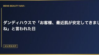 メンズエステダンディハウスで「お客様、最近肌が安定してきましたね」と言われた日 いつものフェイシャルコースが終わった後 ダンディハウスに通い始めて1年が経った頃だった。月2回のフェイシャルコースがすっかり日常になっていて、施術を受けること自体に特別感はなくなっていた。 2026.03.14 2026.03.25メンズエステ