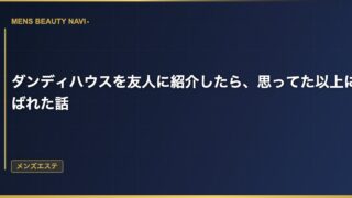 メンズエステダンディハウスを友人に紹介したら、思ってた以上に喜ばれた話 友人にエステの話をしたのは、けっこう勇気がいった ダンディハウスに通い始めて半年くらい経った頃、大学時代からの友人と飲んでいて、肌の話になった。 2026.03.14 2026.03.25メンズエステ