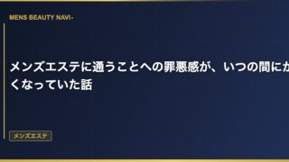 メンズエステメンズエステに通うことへの罪悪感が、いつの間にかなくなっていた話 最初は「男がエステなんて」という気持ちがあった ダンディハウスに通い始めた当初、心のどこかに「男がエステなんて」という罪悪感に近い気持ちがあった。 2026.03.14 2026.03.25メンズエステ