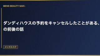 メンズエステダンディハウスの予約をキャンセルしたことがある、その前後の話 仕事が忙しすぎて、予約をキャンセルしてしまった ダンディハウスに通い始めて5ヶ月目くらいのとき、一度だけ予約をキャンセルしたことがある。仕事がどうしても片付かなくて、施術の前日に「すみません、明日行けなくなりました」と電話した。 2026.03.14 2026.03.25メンズエステ