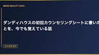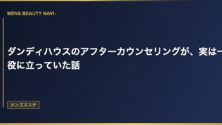 メンズエステダンディハウスのアフターカウンセリングが、実は一番役に立っていた話 脱毛サロンって、施術が終わったら「はい、また次回」という感じで終わりだと思っていた。ダンディハウスに通い始めるまでは。初回のカウンセリングで「アフターカウンセリングがあります」と言われたとき、「また営業トークか」と少し構えた正直な話がある。 2026.03.14 2026.03.25メンズエステ