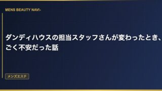 メンズエステダンディハウスの担当スタッフさんが変わったとき、すごく不安だった話 半年間担当してくれたスタッフが異動になった ダンディハウスに通い始めて半年くらい経った頃、いつものように予約を入れたら「次回から担当が変わります」と連絡があった。 2026.03.14 2026.03.25メンズエステ