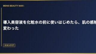 スキンケア導入美容液を化粧水の前に使いはじめたら、肌の感触が変わった 化粧水の前にもう一手間加える スキンケアの順番は洗顔→化粧水→乳液。これが基本だと思っていたし、ずっとそうしていた。でもダンディハウスのスタッフの方に「導入美容液、使ったことありますか?」と聞かれて、初めてその存在を知った。 2026.03.14 2026.03.25スキンケア