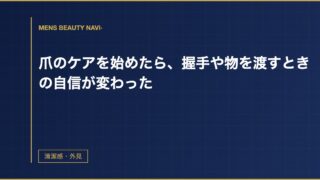 清潔感・外見爪のケアを始めたら、握手や物を渡すときの自信が変わった 30代半ば、電車の中で自分の脇の臭いが気になったことがある。夏場の満員電車で、ふと「これ俺の臭い?」と思う瞬間があった。確信はなかったが、その日からなんとなく不安になってしまった。相手に臭いが伝わったら……と考えると、特… 2026.03.23 2026.03.25清潔感・外見