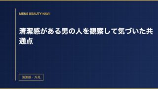清潔感・外見清潔感がある男の人を観察して気づいた共通点 30代になってから、「清潔感がある」と言われる男性と「なんとなく古くさい印象」の男性の違いが気になるようになった。服装だけではない。同じスーツを着ていても、全然違って見える人がいる。何が違うのか、しばらく観察してみた。仕… 2026.03.23 2026.03.25清潔感・外見