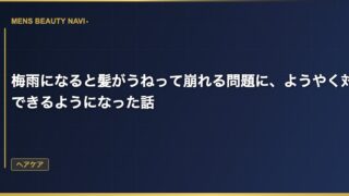 ヘアケア梅雨になると髪がうねって崩れる問題に、ようやく対処できるようになった話 梅雨になるたびに髪が爆発して憂鬱だった 毎年6月が近づくと、髪のことで憂鬱になっていた。湿気が増えると髪がうねる。朝どれだけ丁寧にスタイリングしても、出勤する頃にはもうぐちゃぐちゃ。 2026.03.14 2026.03.25ヘアケア