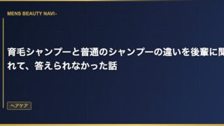 ヘアケア育毛シャンプーと普通のシャンプーの違いを後輩に聞かれて、答えられなかった話 後輩に「育毛シャンプーって何が違うんですか?」と聞かれた 職場の後輩と飲みに行ったとき、髪の話になった。俺が育毛シャンプーを使っていることを何かの流れで話したら、後輩が「普通のシャンプーと何が違うんですか?」と聞いてきた。 2026.03.14 2026.03.25ヘアケア