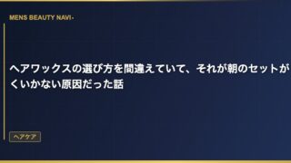ヘアケアヘアワックスの選び方を間違えていて、それが朝のセットがうまくいかない原因だった話 毎朝ヘアセットに20分かかっていた 朝のヘアセットがとにかく決まらなかった。ワックスをつけてもすぐにペタンとなるし、束感を作ろうとしてもベタっとした仕上がりにしかならない。 2026.03.14 2026.03.25ヘアケア