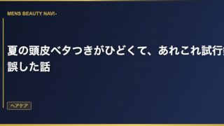 ヘアケア夏の頭皮ベタつきがひどくて、あれこれ試行錯誤した話 夏になると頭皮がベタベタで、夕方には匂いが気になる 毎年夏が来ると悩まされるのが頭皮のベタつきだ。朝シャンプーしても、昼過ぎには頭皮がベタッとしてくる。 2026.03.14 2026.03.25ヘアケア