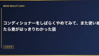 ヘアケアコンディショナーをしばらくやめてみて、また使い始めたら差がはっきりわかった話 コンディショナーをやめた理由 コンディショナーをやめたのは、別に何か信念があったわけじゃない。単純に面倒だったのだ。シャンプーだけで済ませれば入浴時間が短くなるし、コンディショナー代も節約できる。 2026.03.14 2026.03.25ヘアケア