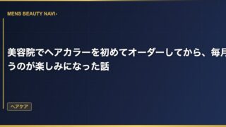 ヘアケア美容院でヘアカラーを初めてオーダーしてから、毎月通うのが楽しみになった話 ヘアカラーは女性がするものだと思っていた 30歳を過ぎるまで、髪を染めたことがなかった。学生時代は校則で禁止だったし、社会人になってからは「男がカラーなんて」という固定観念があった。 2026.03.14 2026.03.25ヘアケア