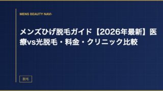 脱毛メンズひげ脱毛ガイド【2026年最新】医療vs光脱毛・料金・クリニック比較 毎朝のひげ剃りから解放されたい人へ。料金・回数・痛み・クリニック選びまで、知っておくべきことを一気に解説する。 2026.03.23 2026.03.25脱毛