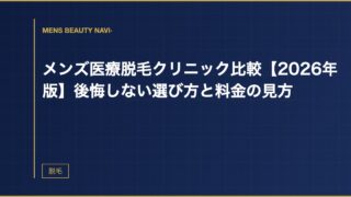 脱毛メンズ医療脱毛クリニックおすすめ比較【2026年版】 2026年最新・メンズ医療脱毛クリニックおすすめを徹底比較。料金・効果・通いやすさを基準に人気クリニックをランキング形式でわかりやすく解説します。 2026.03.23 2026.03.25脱毛